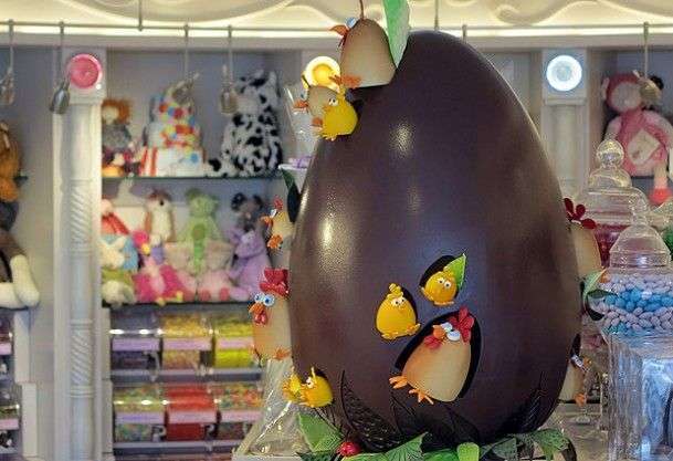 New York kentinde Manhattan'daki Sugar and Plumm adlı pastane, çikolatadan yapılan tavşan ya da yumurta hediye etmenin gelenek olduğu paskalya günü nedeniyle dev boyutlu bir yumurtayı satışa sundu.Çikolatası Venezuela'dan getirtilen 10 kilogram ağırlığında ve 1 metre boyundaki paskalya yumurtasına bin dolar fiyat etiketi konuldu.Angry Birds oyunundan esinlenerek hazırlanan yumurtanın üzerine farklı boyut ve görünümde çok sayıda tavuk ve uğur böceği figürleri yerleştirildi.Aynı zamanda pastanenin internet sitesinde online olarak da satışta bulunan yumurta, özellikle çocukların ilgi odağı oldu.Paskalya Bayramı bu yıl 31 Mart'ta kutlanacak.