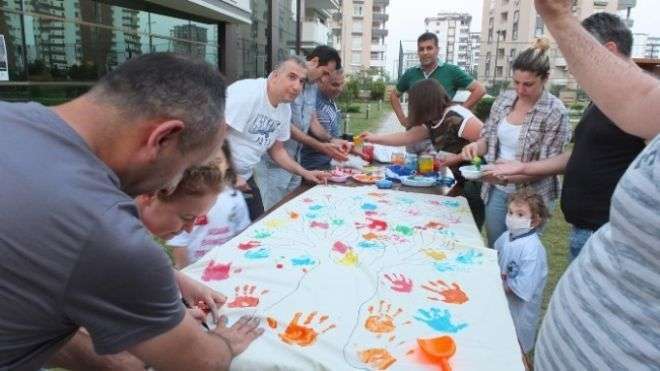 Ebeveynlerin ve çocukların birlikte hazırladığı şenlik, “Yeşil bir çevre için bir fidan dikin” sloganının gereği olarak, her çocuğun isimlerinin yazıldığı fidanların dikimi ve can suyunun verilmesiyle başladı. Çevre kirliliğine karşı çocukları bilinçlendirmek amacı ile anne babalar ellerine poşetler alarak site bahçesini çocukları ile birlikte temizlediler. Bir site sakininin beyaz bir beze çizdiği ağaç gövdesine, çocukların ellerini boyayarak çiçek yapmaları, çevre temizliğiyle ilgili farkındalık oluşturmak açısından etkili bir faaliyet oldu.