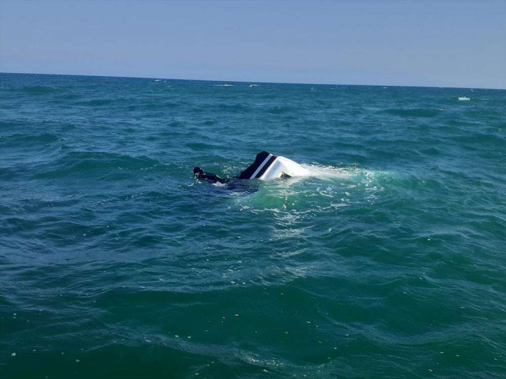 Yüzevler Plajı'nın yaklaşık 200 metre açığında 4 kişinin içinde bulunduğu tekne şiddetli rüzgar nedeniyle alabora oldu.