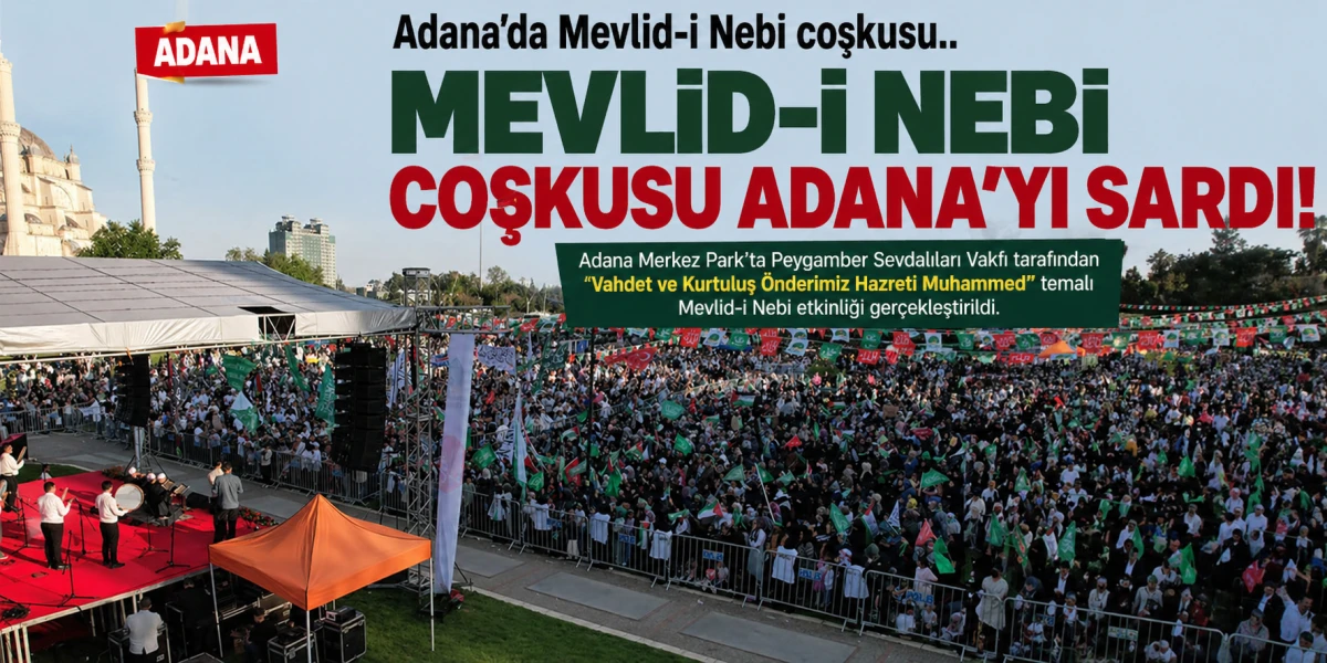Adana Merkez Park'ta Peygamber Sevdalıları Vakfı tarafından "Vahdet ve Kurtuluş Önderimiz Hazreti Muhammed" temalı Mevlid-i Nebi etkinliği gerçekleştirildi.