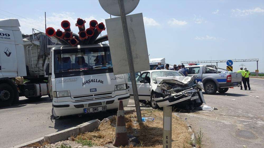 Onur Cem Günbaz'ın (35) kullandığı 01 C 0345 plakalı otomobil ile Zeki Yarat (68) idaresindeki 01 DMG 08 plakalı kamyonet, D-400 kara yolu Yeni Mezarlık kavşağında çarpıştı.