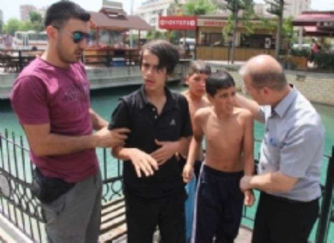 Kanala girerken birden karşısında polisi gören çocuklar şok oldu. Yarı çıplak olan çocuklar polisin yanlarına gelip "hadi çocuklar kanala girmek tehlikeli ve yasak sizi götürüyoruz" demesi üzerine çok korktu. Bazı çocuklar ağlarken bir çocuk ise polisle gitmemek için sulama kalanının demir korkuluklarına sarılıp gitmek istemedi. Uzun süre demire sarılan çocuğu polis ikna ederek polis aracına bindirdi.