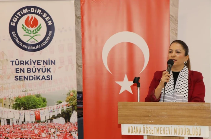 Eğitim-Bir-Sen Adana Şube Kadınlar Komisyonu’nun düzenlediği “Gazze’nin Kadınları Kalbimizin Sesi” alt başlıklı İstişare Toplantısı’nda Genel Merkez Kadınlar Komisyonu Başkanı Sıdıka Aydın önemli açıklamalar yaptı. Kadını öncelediklerini çünkü kadının öncü olduğunu vurgulayan Aydın, Adana Şube Kadınlar Komisyonu’na da övgüler yağdırdı.