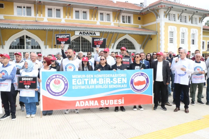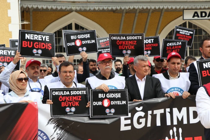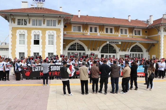 Şanlıurfa'nın Siverek ilçesinde bir okulda gerçekleştirilen silahlı saldırı, Adana İstasyon Meydanı’nda Eğitim-Bir-Sen üyeleri tarafından protesto edildi. Eğitim-Bir-Sen Adana Şube Başkanı Mustafa Sarıgeçili, “Okullarımızda şiddet artık münferit bir olay değil, toplumsal bir çürümenin en vahim tablosudur” dedi.