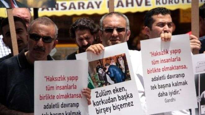 Cuma namazının ardından 5 Ocak Meydanı'nda toplanan İnsan Hakları ve Mazlumlar için Dayanışma Derneği (MAZLUMDER) Adana Şubesi üyeleri, pankart açıp, slogan attı.