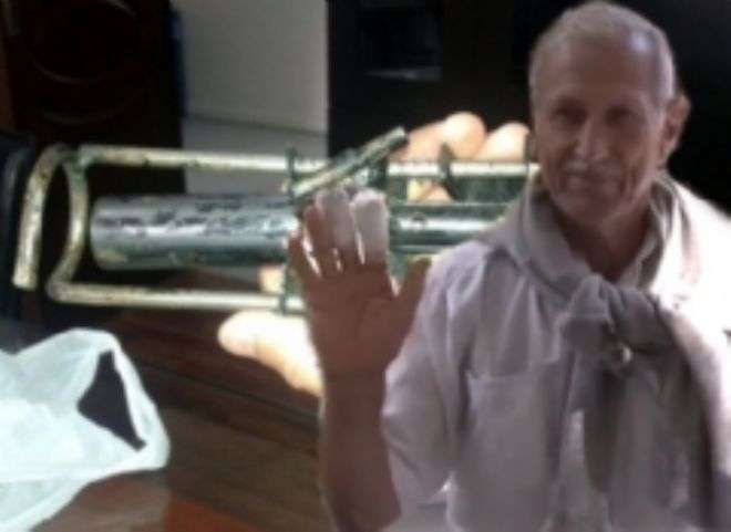 Karasoylu, bahçesinde 10 yıldır mahsulleri yiyen köstebek ile mücadele ettiğini belirterek, "Bütün ektiğimiz biberleri, patlıcanları ve fasulyeleri hepsini yiyor, köstebek denen bir mahluk. Mahsulleri kurtarmak köstebek ile mücadele etmek için bir tabanca yaptım. Yani sadece bu köstebek için yapılan bir tabanca bu. Delikten tabancayı çıkardım getirdim emniyetini koydum. Evin önüne kadar getirdim sadece unuttuğum bir şey var namluyu sökmedim. Namlunun vidası var onu gevşetmeye unuttum. Yani unutkanlık olacak bir şey ya kurcalarken emniyeti düşmüş kendiliğinden ama ben görmedim. O arada patladı ve elimi yaraladı. Başka yerime gelse ben şuan yoktum paramparça yapardı" dedi.