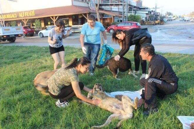 Sokak Hayvanını Besleyip Tedavi Ettiler
